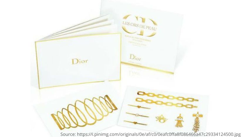 En 2012, Dior ofreció a sus clientes tatuajes temporales realizados con lámina preciosa de la más alta pureza. Diseñadas por Camilla Micheli, las imágenes en forma de cadenas y diseños dorados, cuando se aplican correctamente sobre la piel, lucen tan bien como verdaderas piezas de joyería.